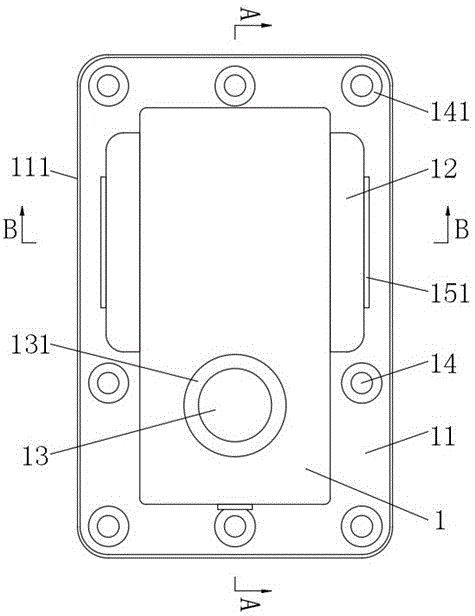 進一步的,密封構造還包括密封槽112,密封槽112開設在底板11底部的外側,密封槽112內部在安裝時內部設置有密封圈。密封圈的形狀根據密封槽112的形狀截取填充設置,密封槽112為橡膠密封圈,作為優選的,可在底座的頂部外側開設與其相匹配的溝槽,便于安裝密封圈。
